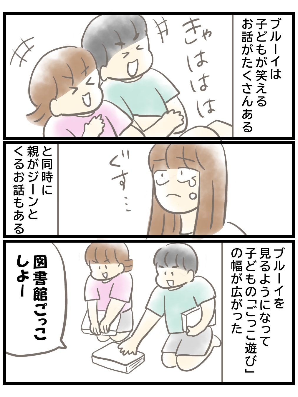 実際に我が家も、ブルーイを見ることで遊びの幅が広がったり、家族の会話が増えて子どもの気持ちに気づきやすくなりました。