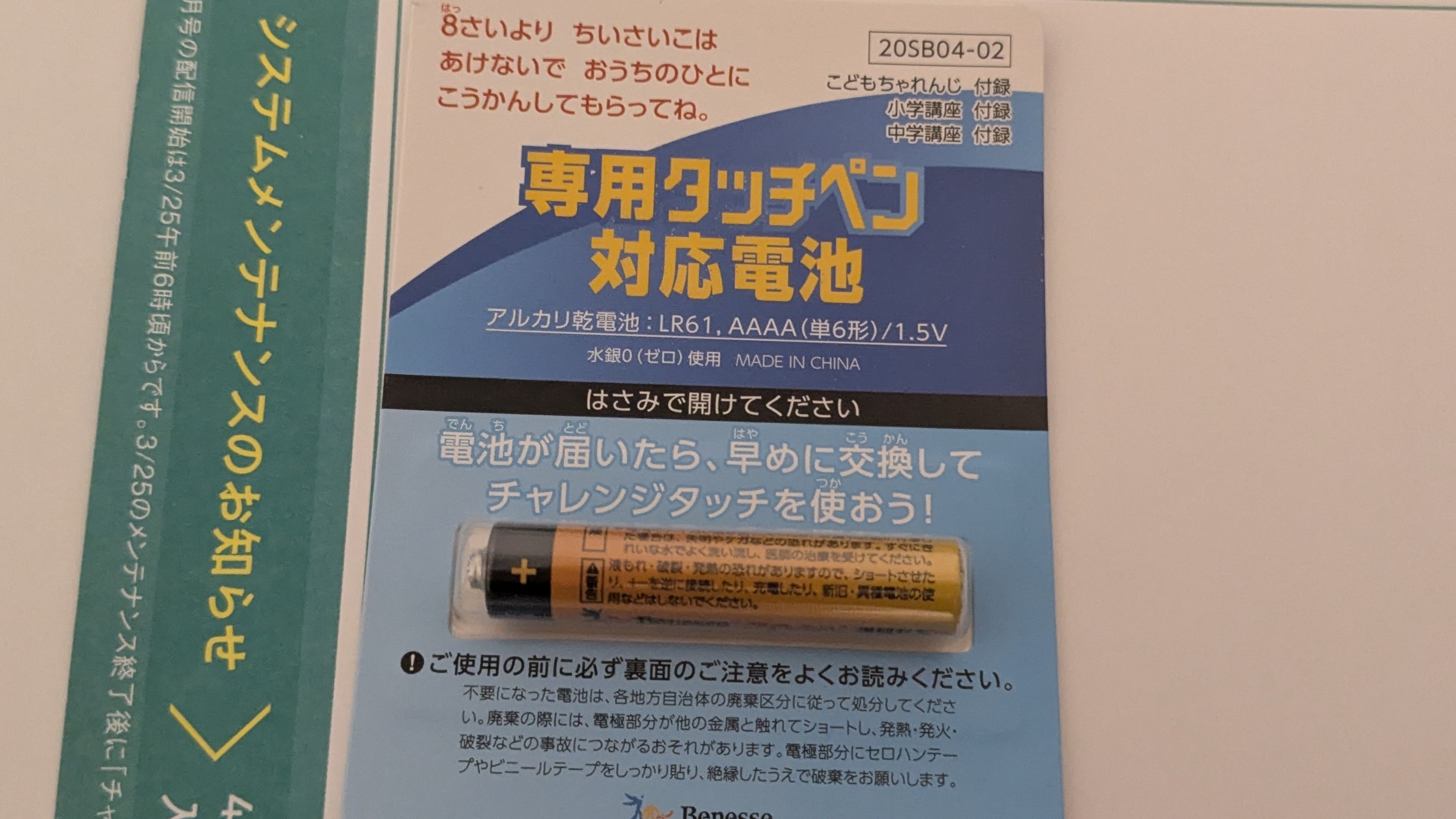は、こどもちゃれんじ年長コースのときにすでに届いていました。