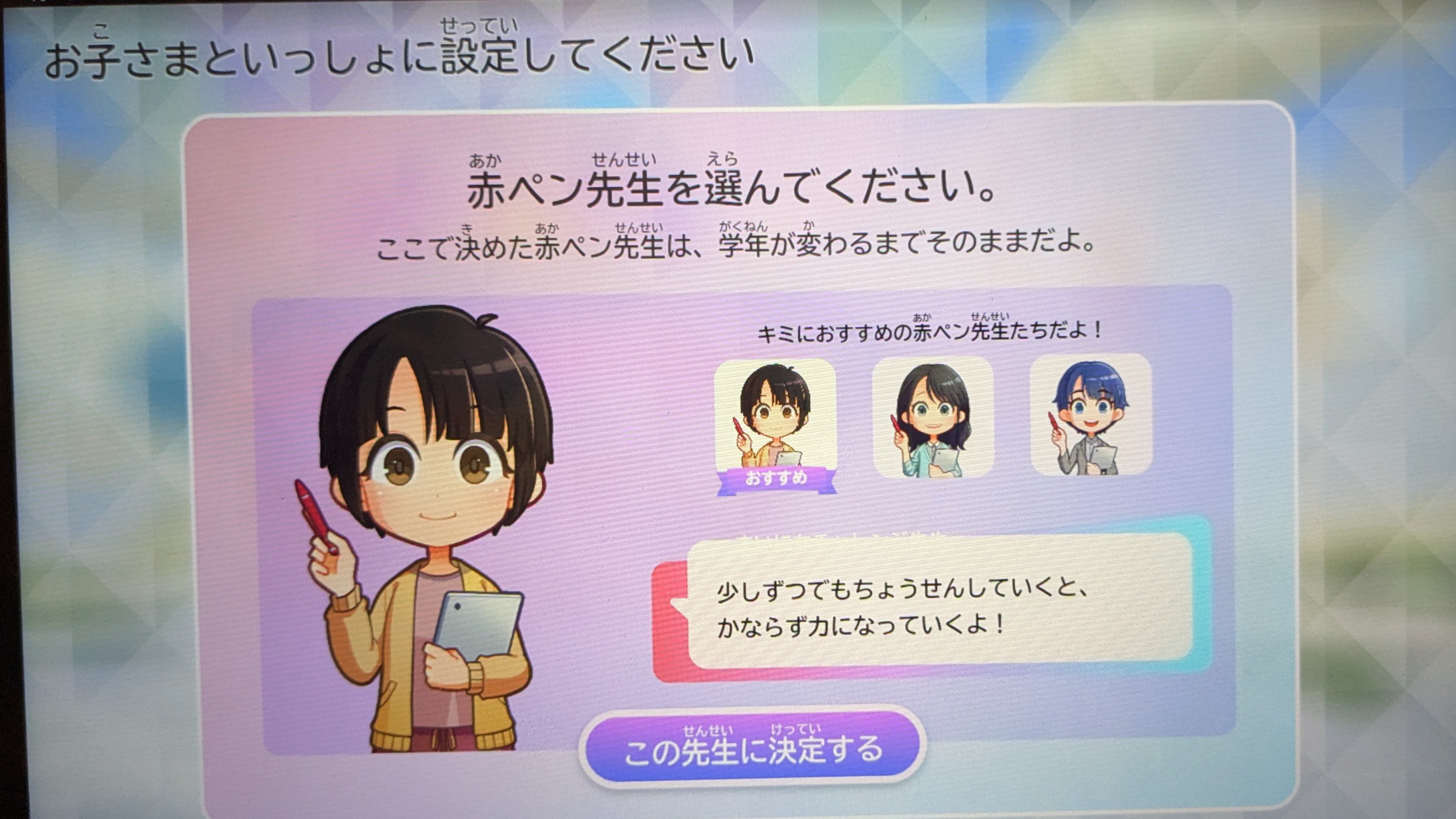 設定では、アバターや赤ペン先生を選ぶことができるので、子どももワクワクしながらスタートできました♪