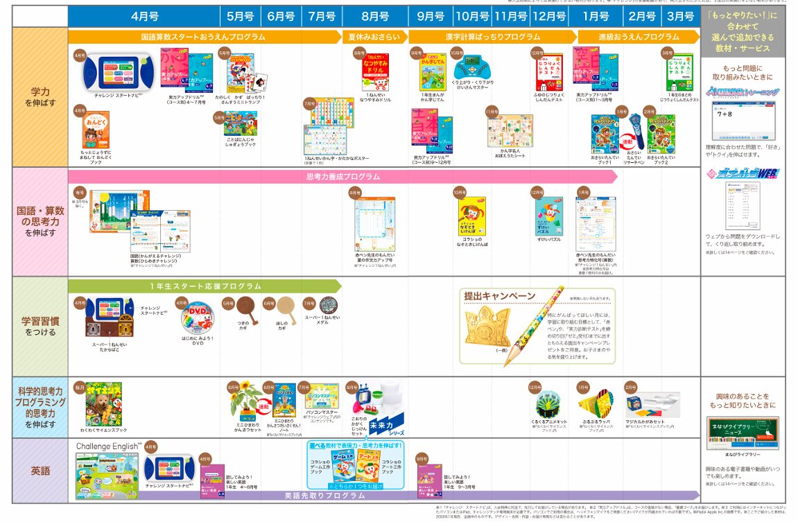 「チャレンジ」の年間お届け教材一覧