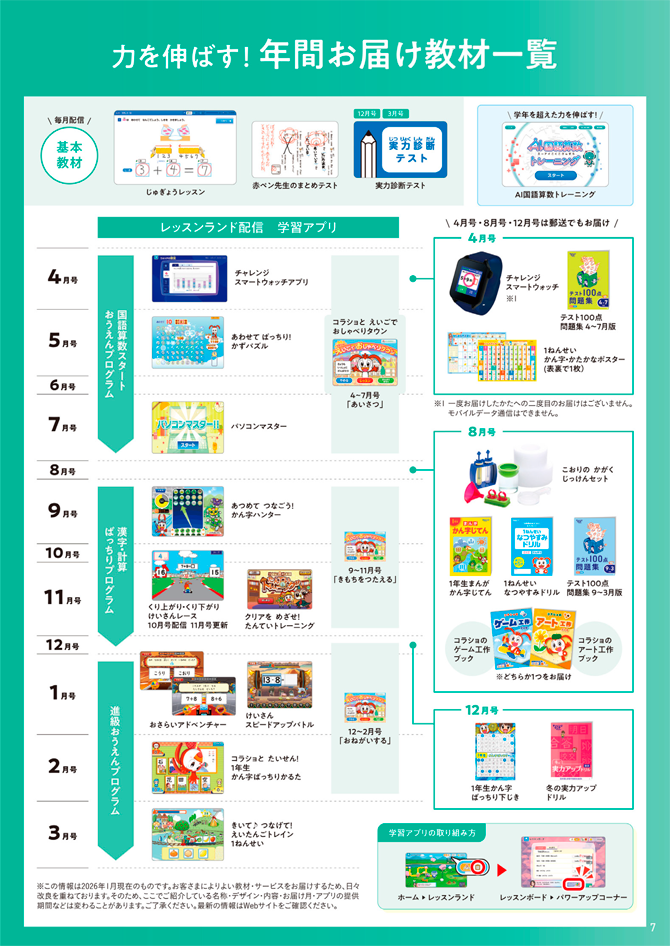 4月号から入会した場合にもらえる教材