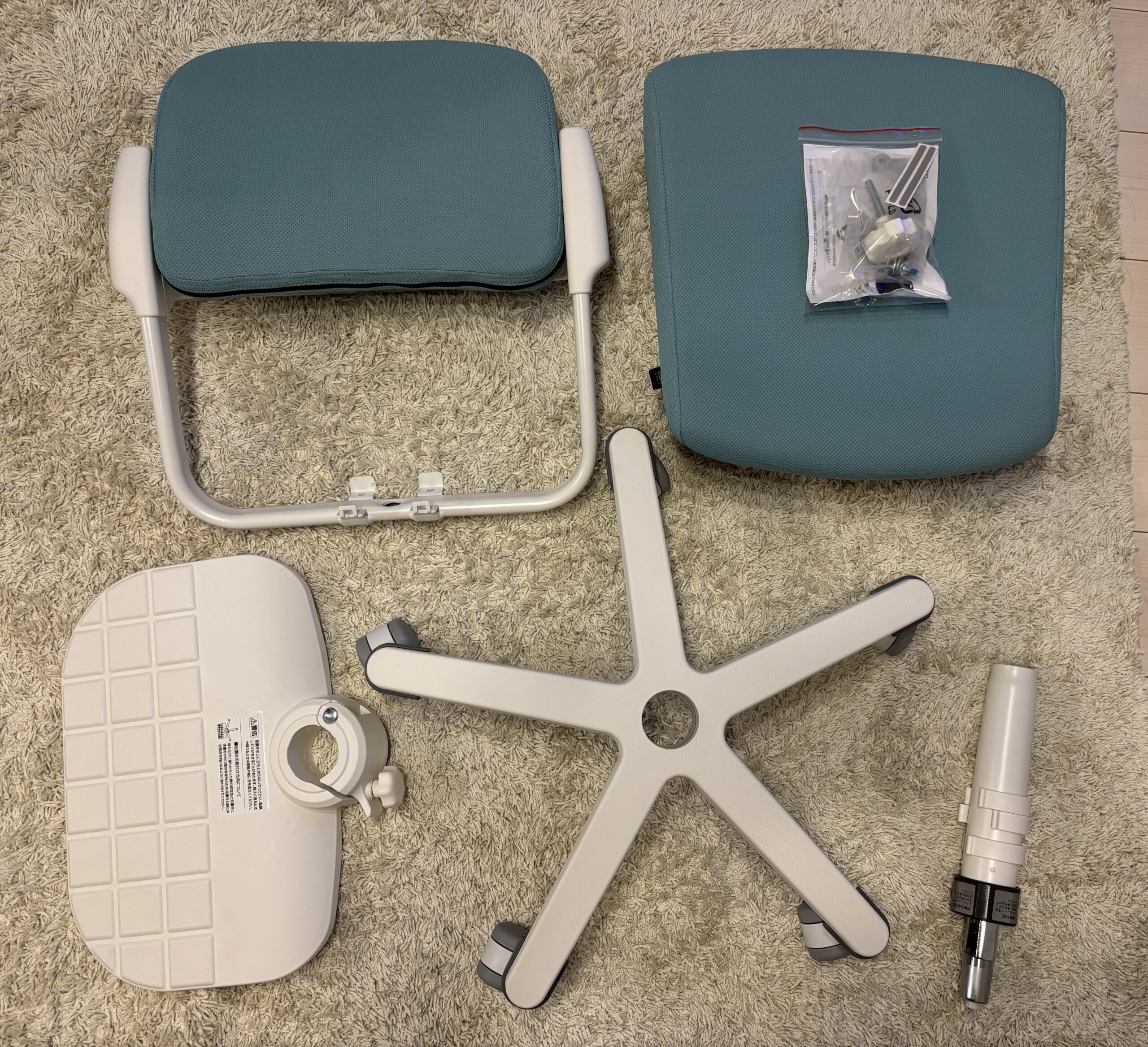 組み立てるパーツはこれだけ!簡単に完成できますが、座ってみるとしっかり安定感があります。