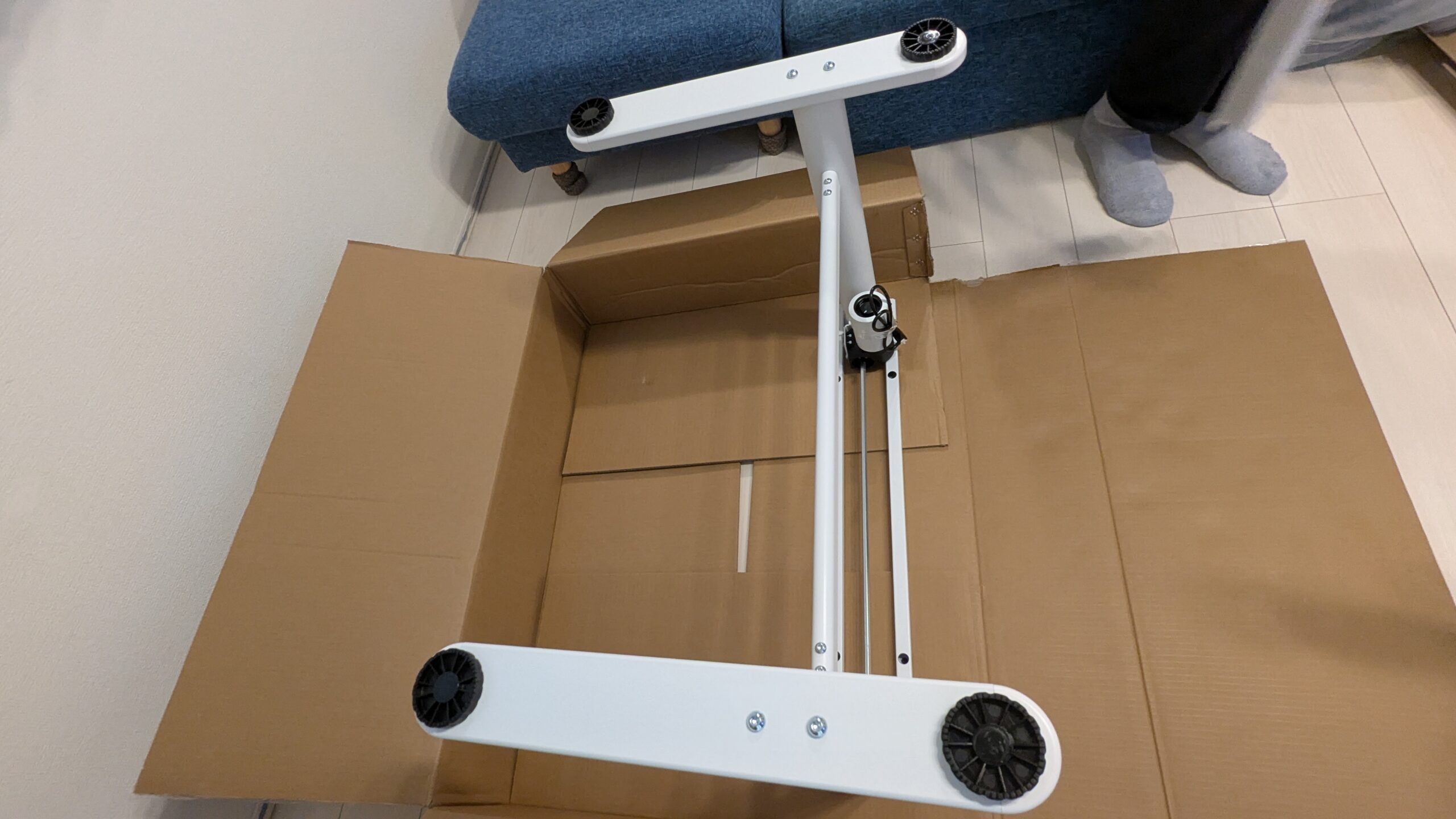 まずFlexiSpotは大きな段ボールで届くので、玄関から運ぶのは大人2人が安心です◎