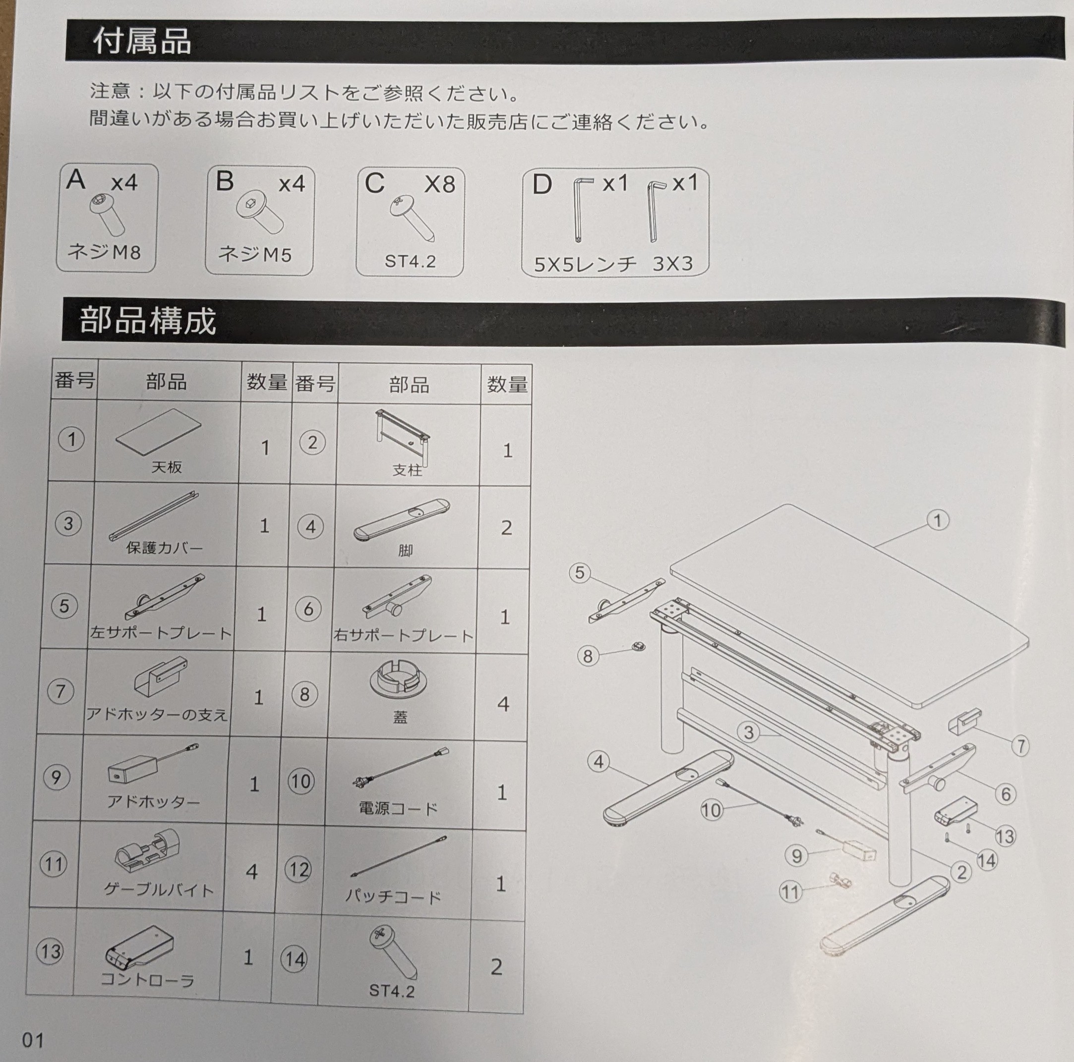 FlexiSpot SD1 付属の部品