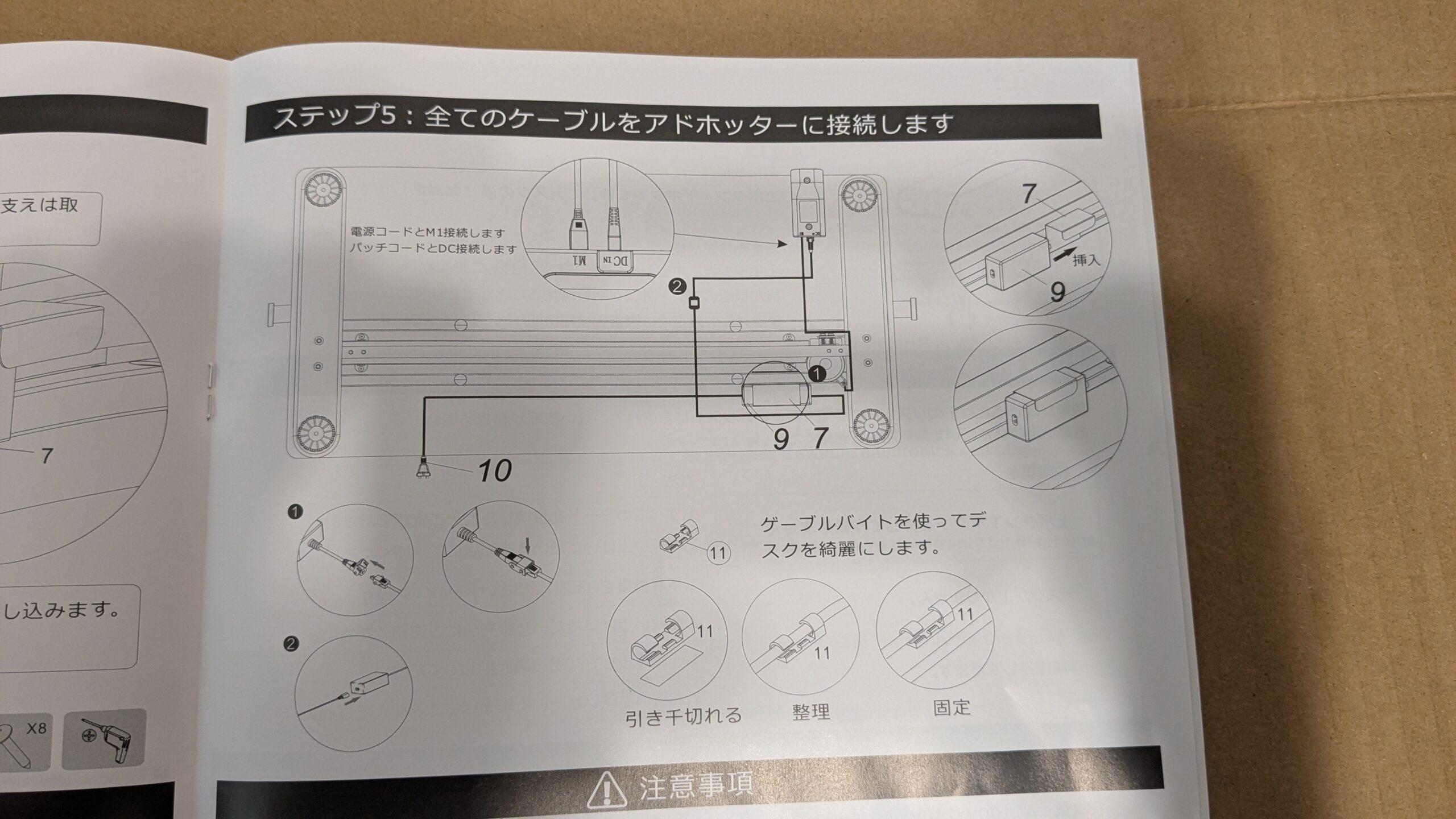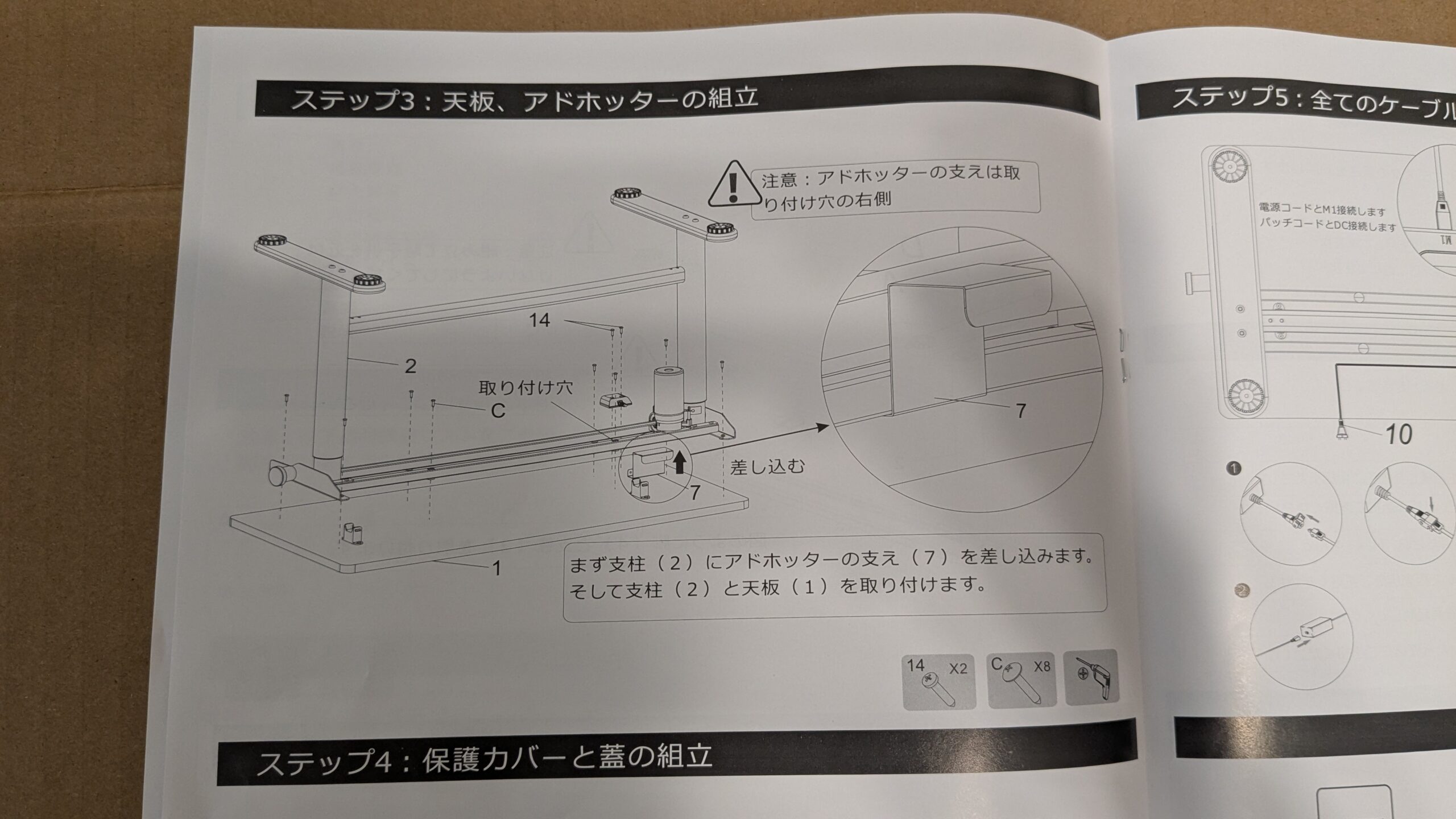 アドホッターを支えに差し込み、ケーブルを繋いでいきます。