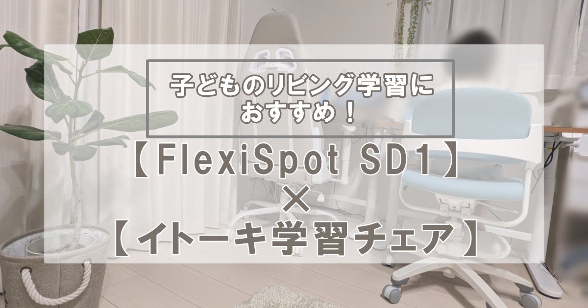 リビング学習を実践しながら、実際に親子でFlexiSpotを使い続けている“くらげ”が、SD1の組み立て方や実際の使い心地、さらに一緒に選んだイトーキの学習チェアのレビューを詳しく紹介。