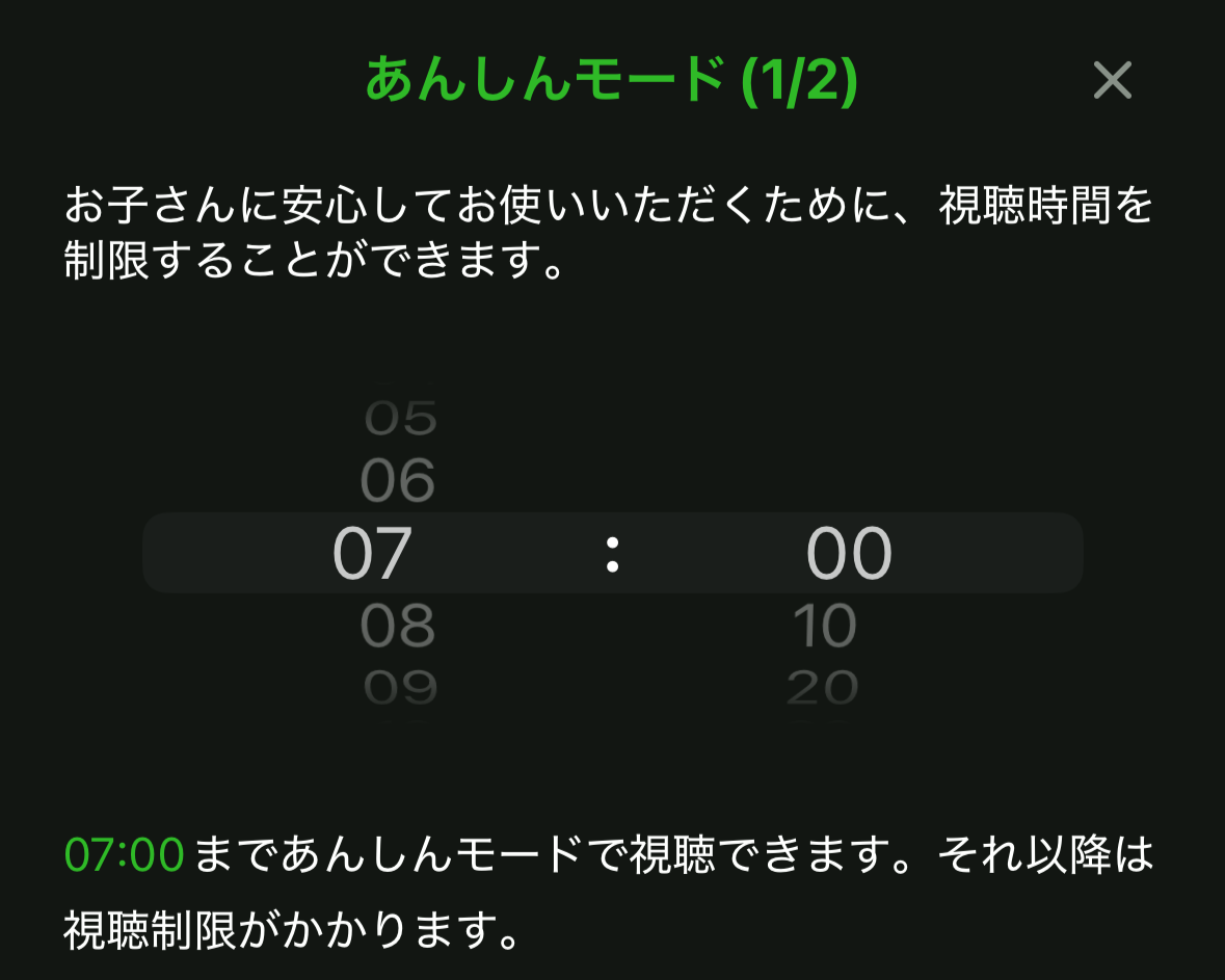 1時間くらい見たら休憩してほしいので、この視聴制限機能はめちゃくちゃ便利!