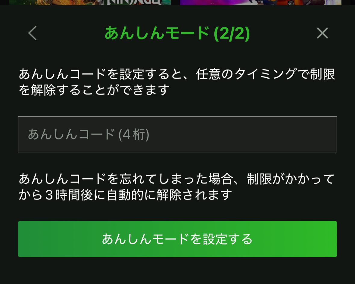 解除方法保護者が設定した4桁の「あんしんコード」が必要です。