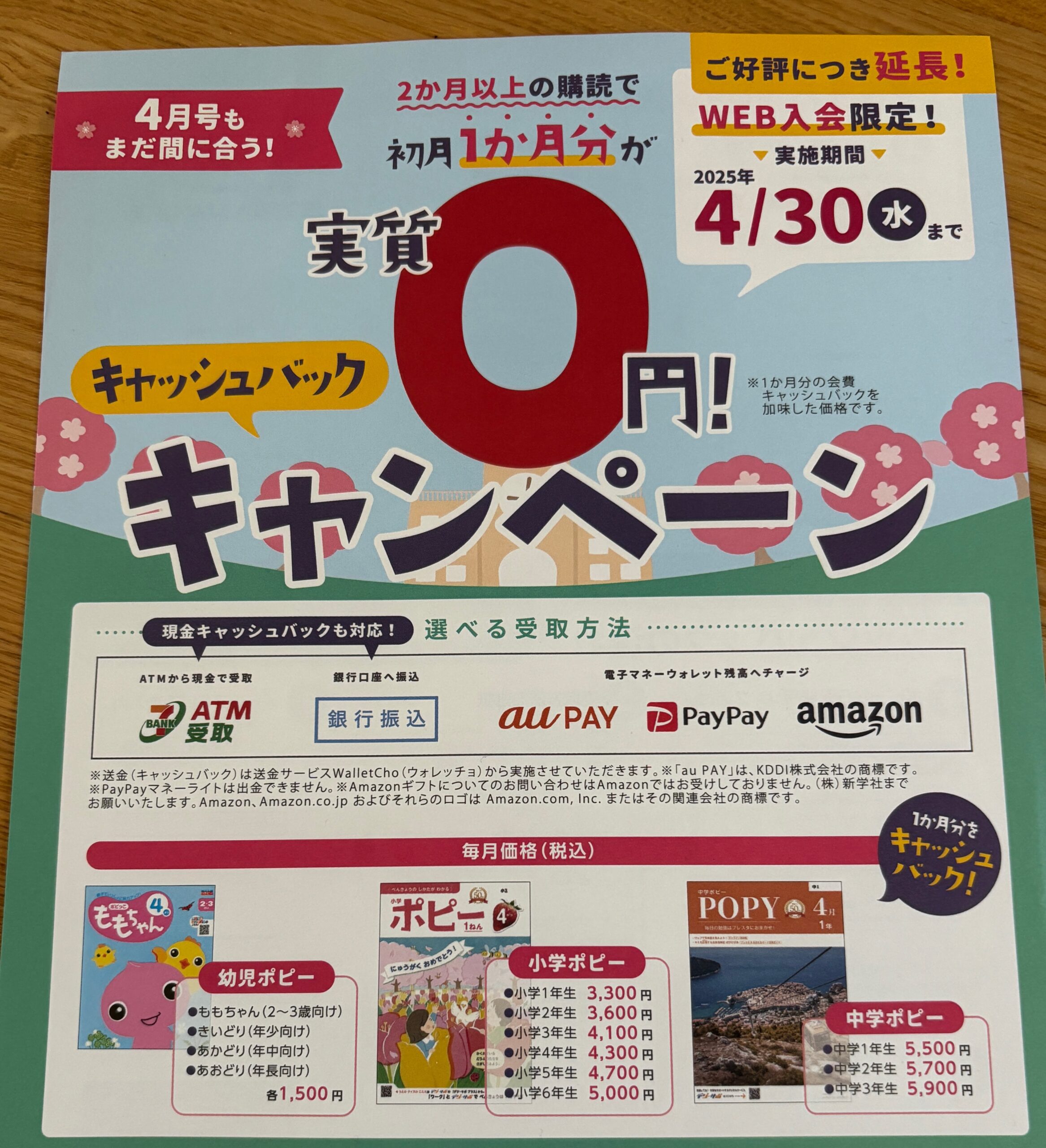 タブレット学習は気になったのですが、今回は価格の安さ+紙に「書く力をつけたい」と思い、ポピーに決めました!