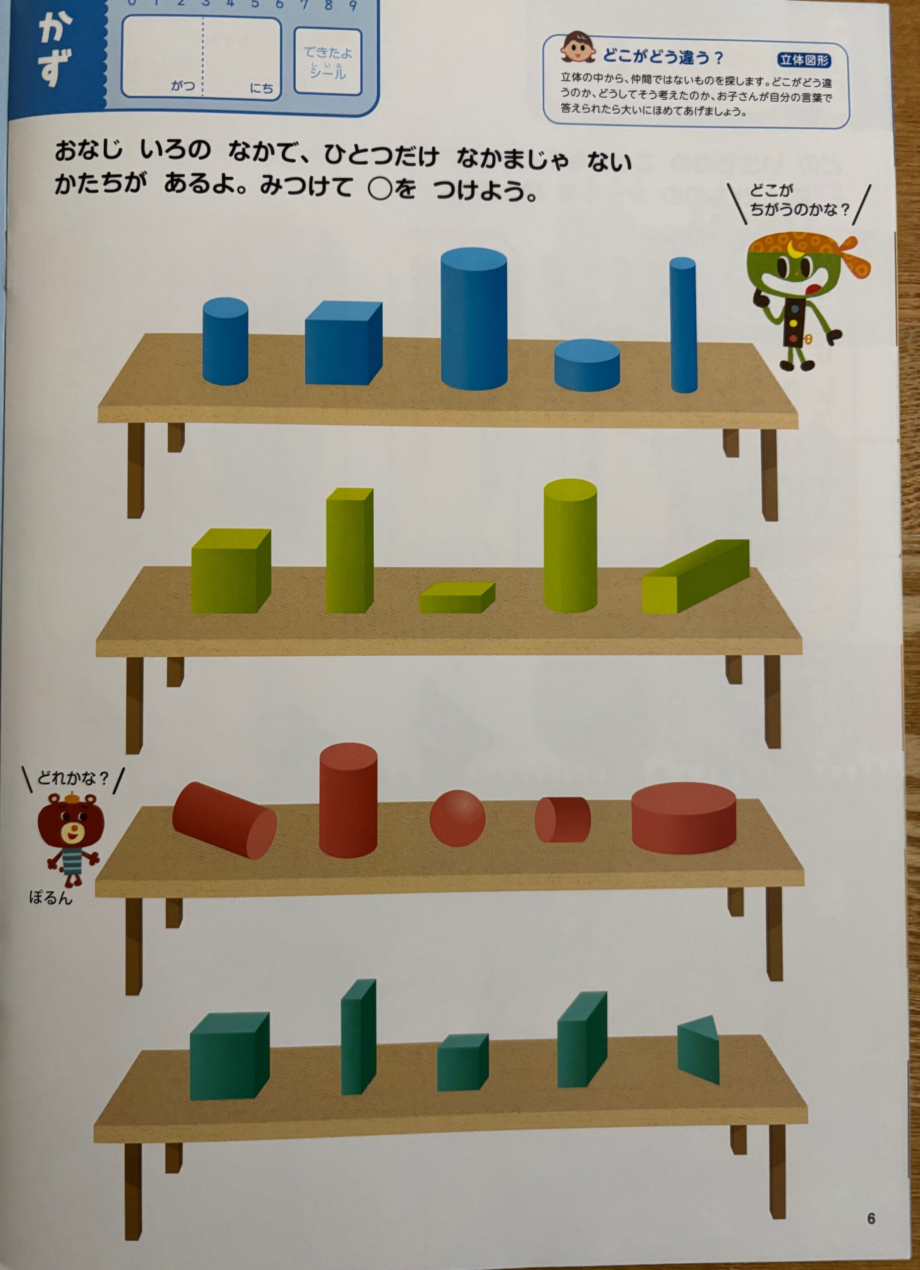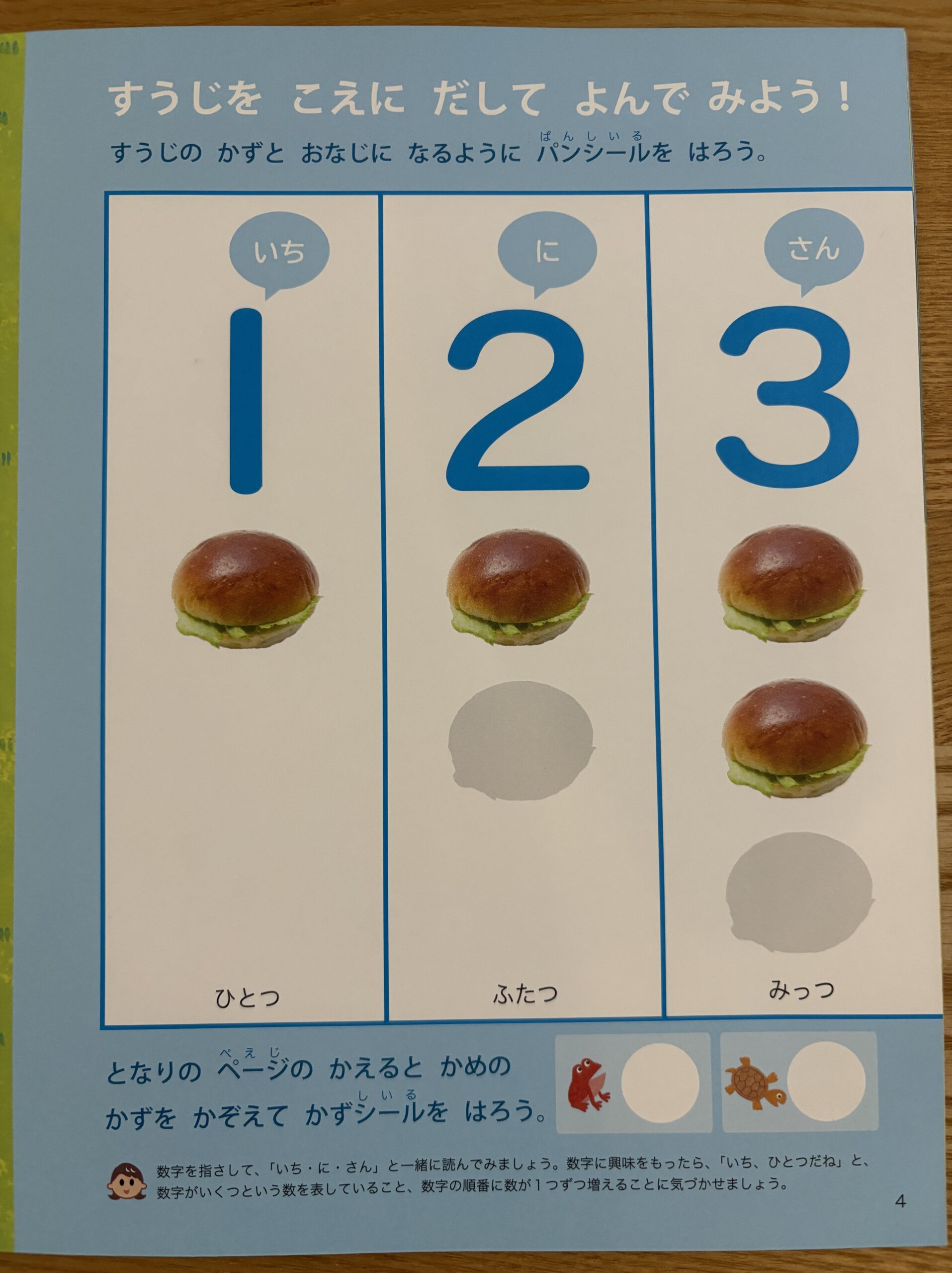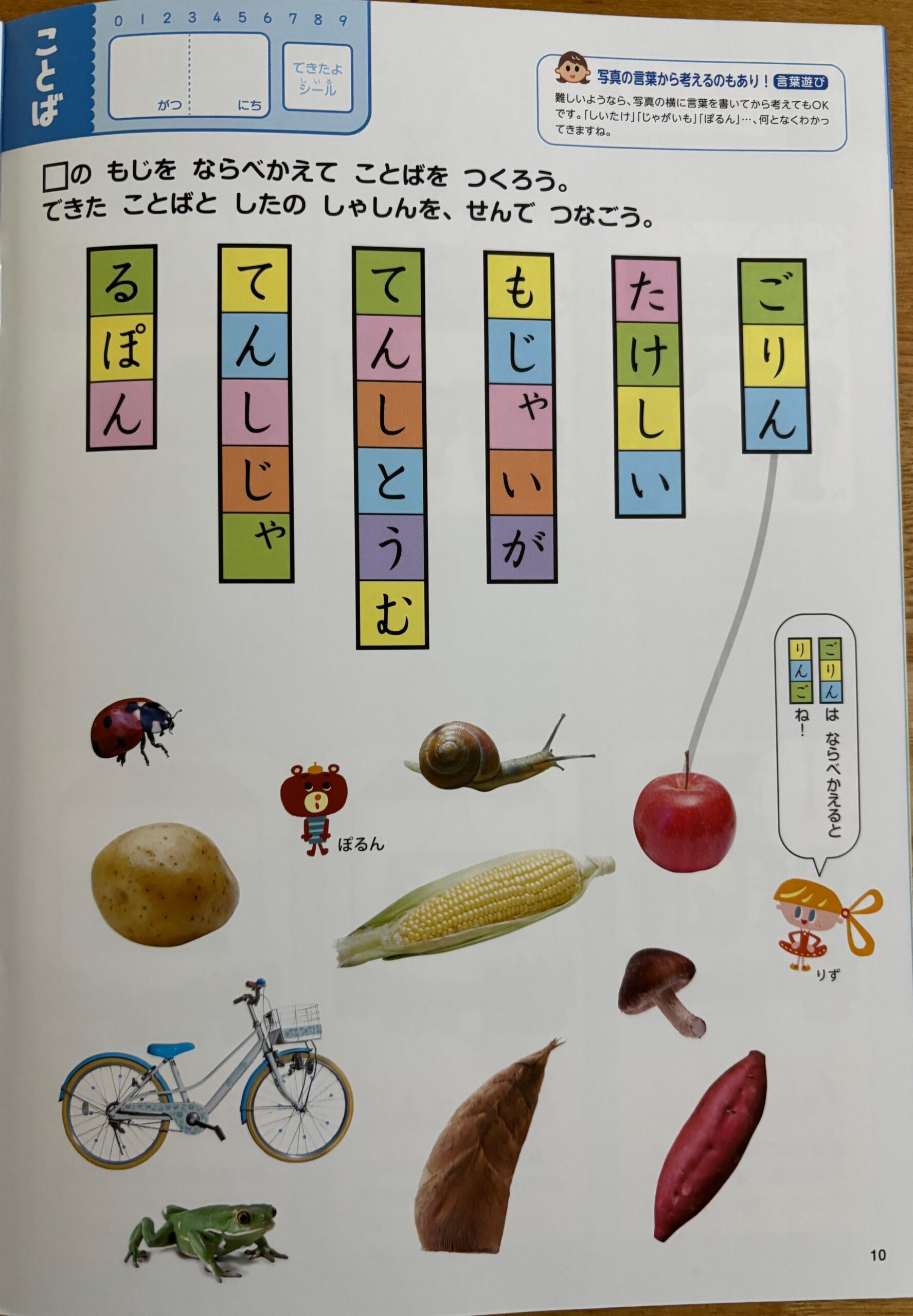 「いかにも勉強!」という感じではなく、遊びの中で数字や文字に親しめるのが年少さんにはぴったりだと思いました。
