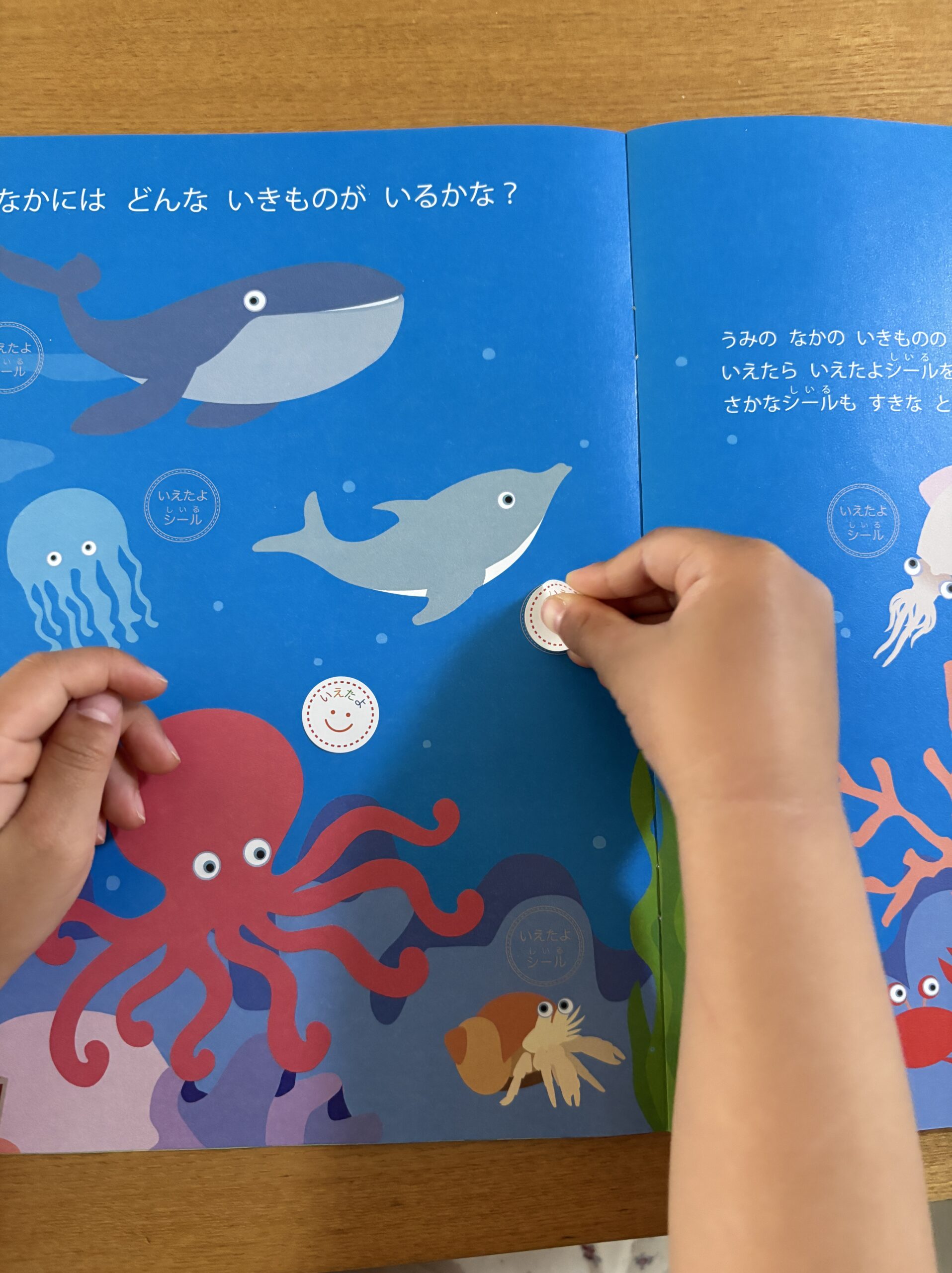 これは海の生き物の名前が言えたら「いえたよシール」を貼るという内容でした。