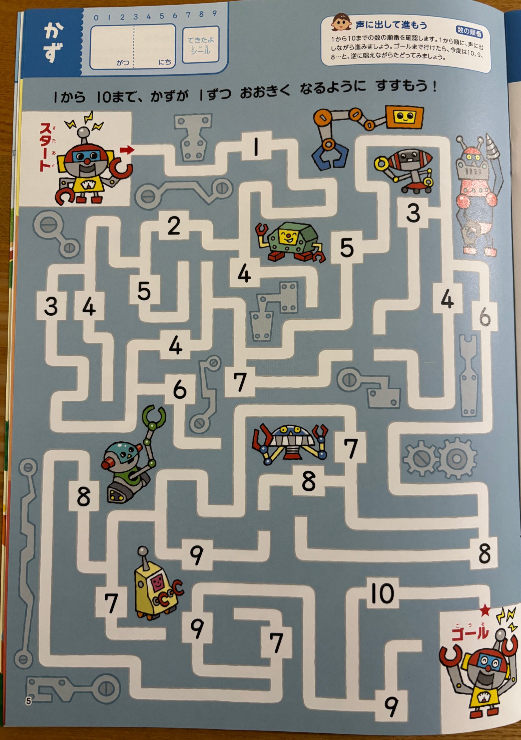 数字があまり得意じゃない子でも、イラストだったり迷路の中で数字に触れることができるので自然と数字が覚えられる工夫がされてました。