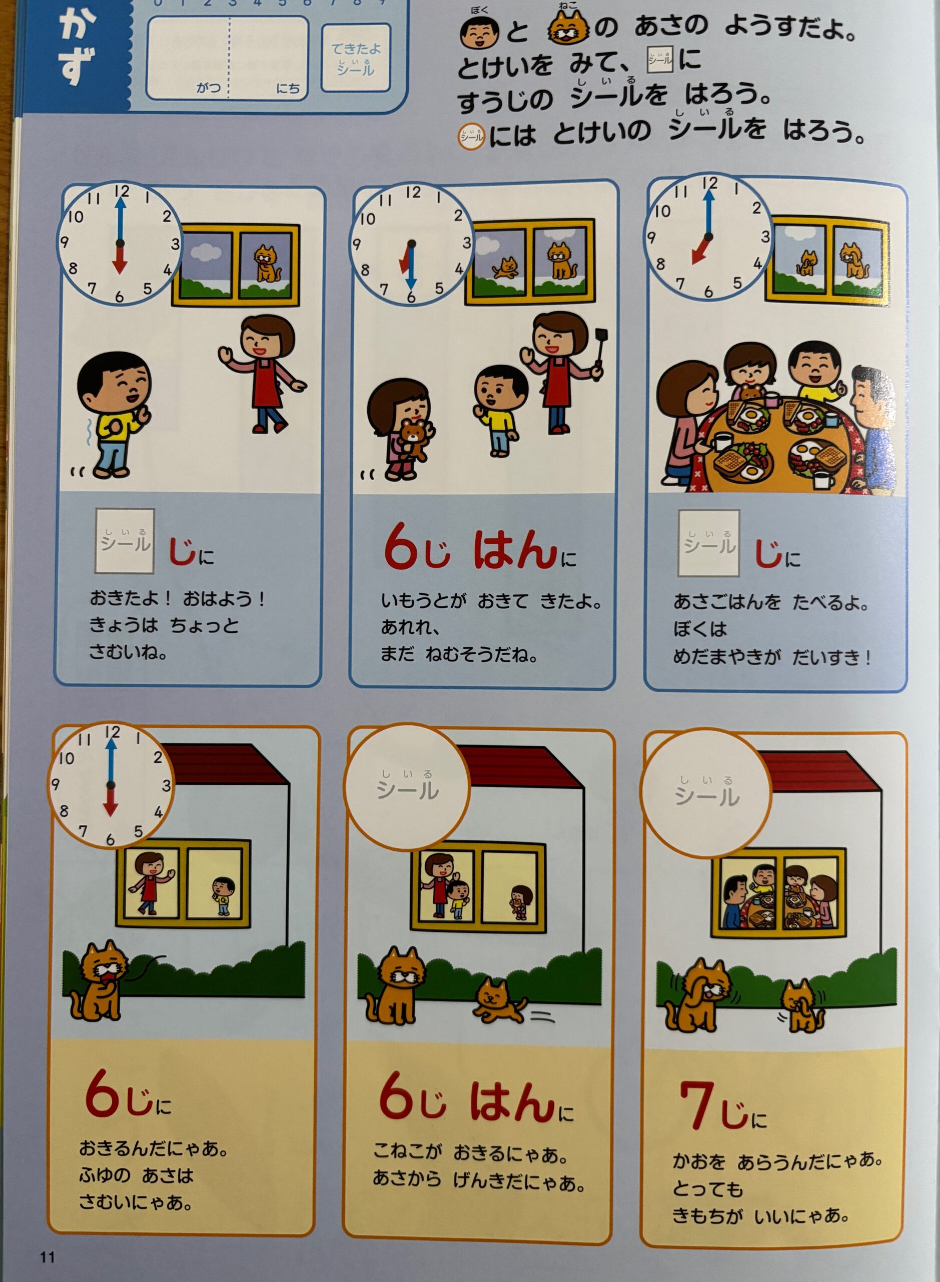 時計の時間を楽しく教えるのはなかなか難しいので、こういう教材を使って楽しく学べるのはいいですね!