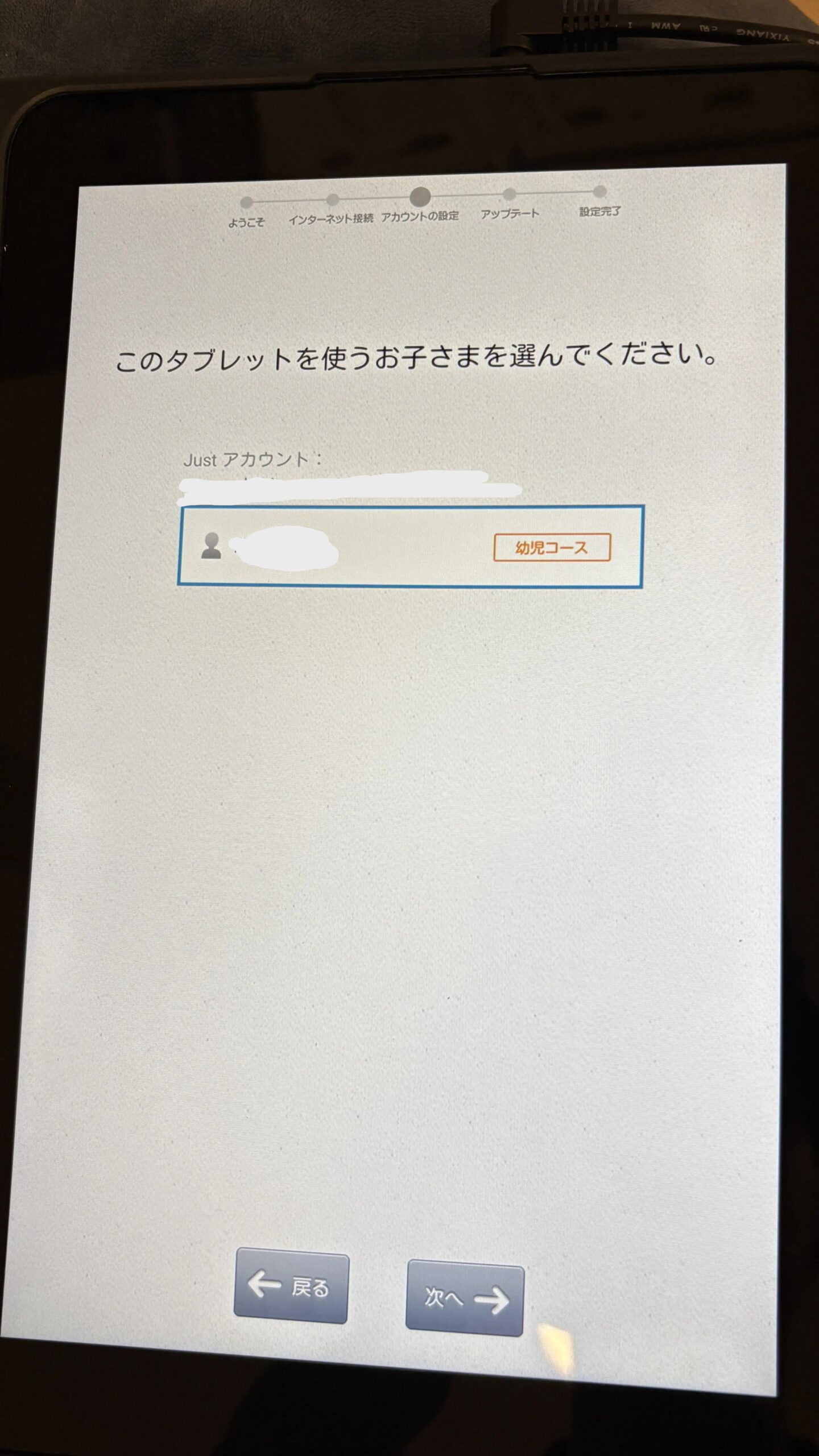 タブレットを使うお子さんの名前を選ぶと、ソフトウェアがアップデートされ学習ができるようになります。