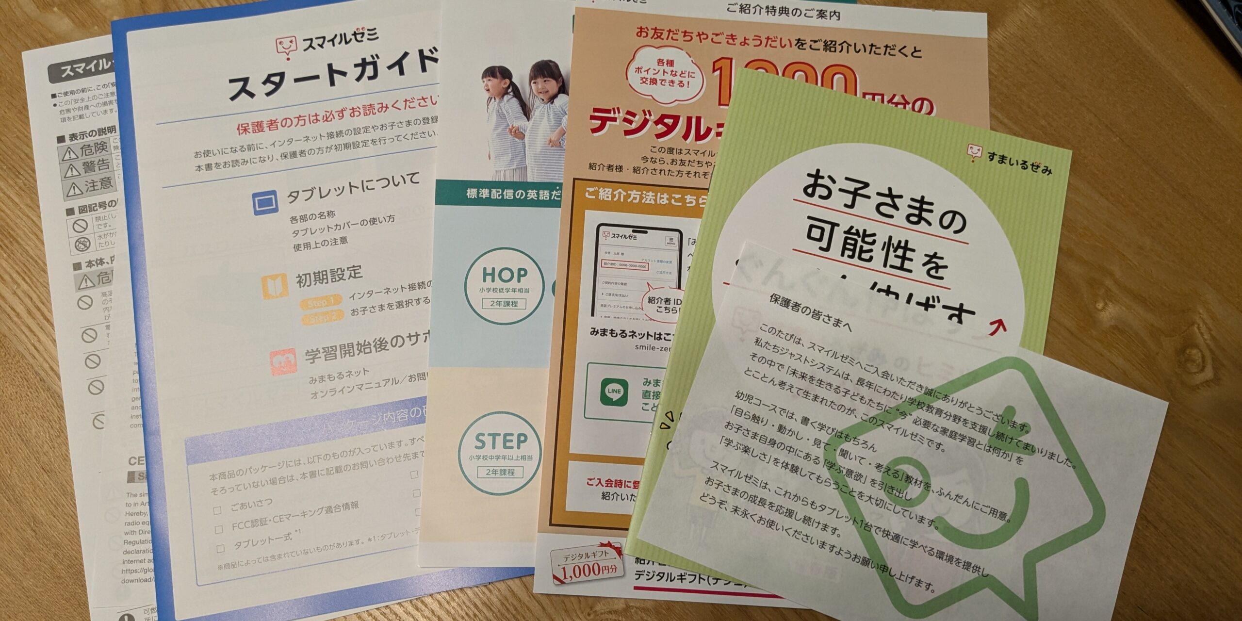 スマイルゼミは付録なしでタブレットのみで完結するので、入っていたものはタブレット関連のみでした。