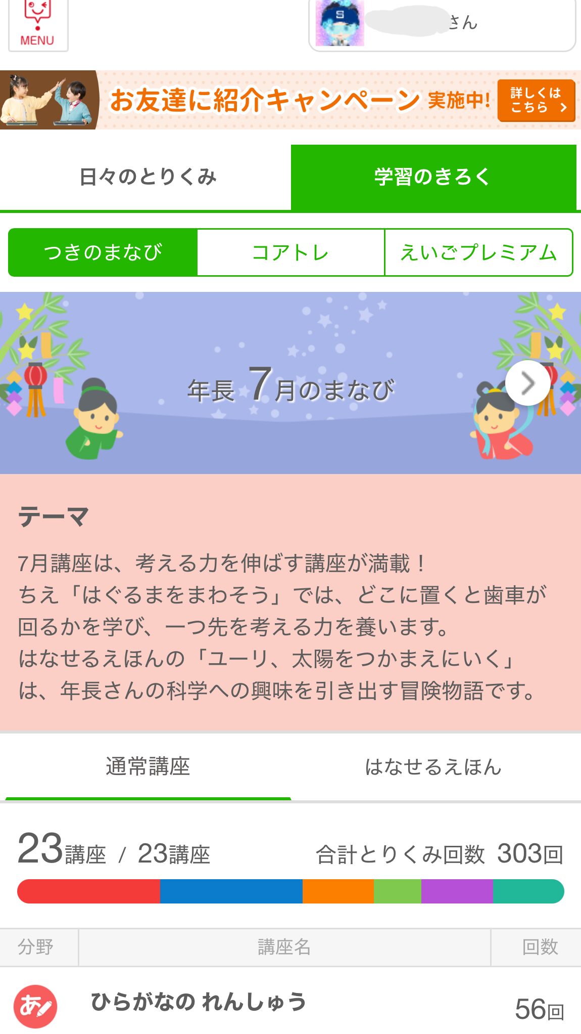 月ごとの学習状状況などをスマホアプリで確認できます♪