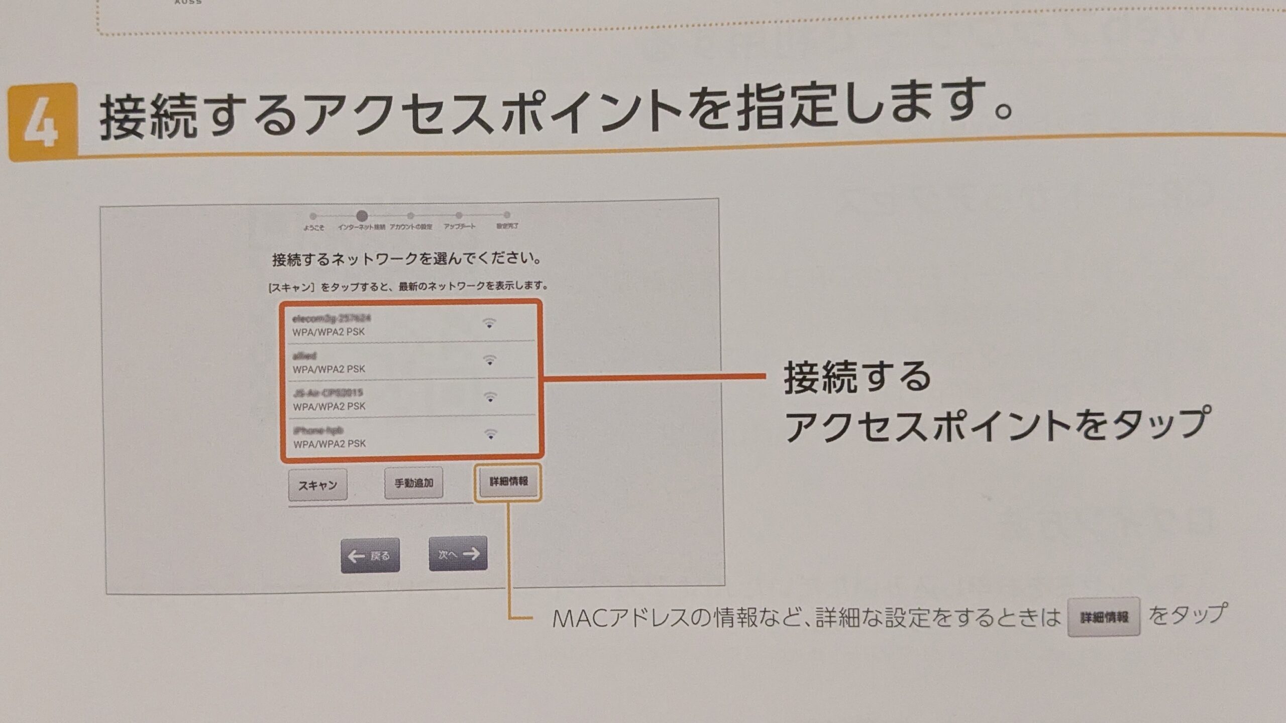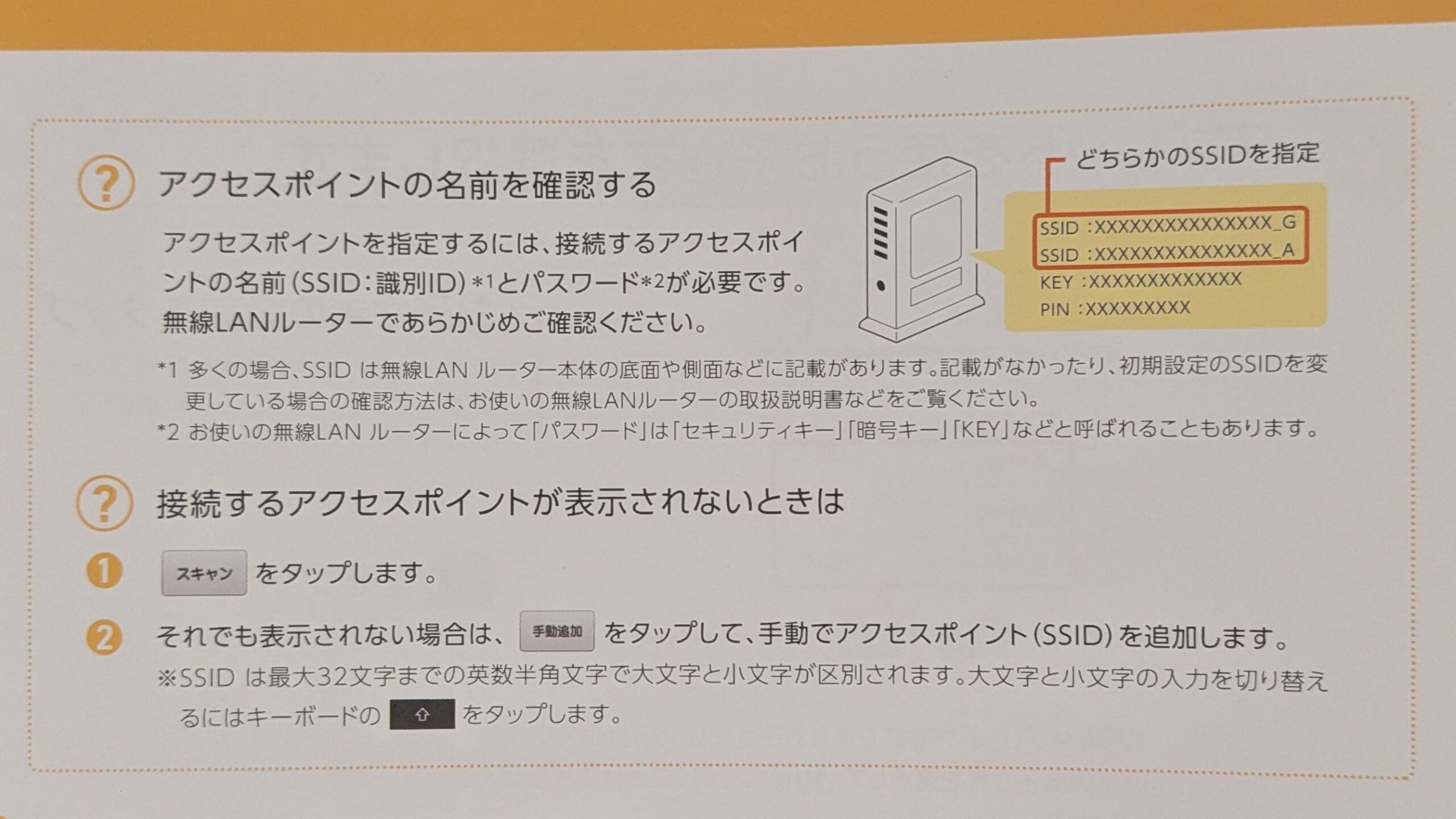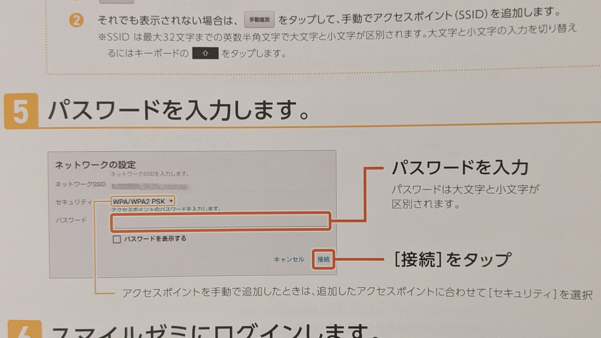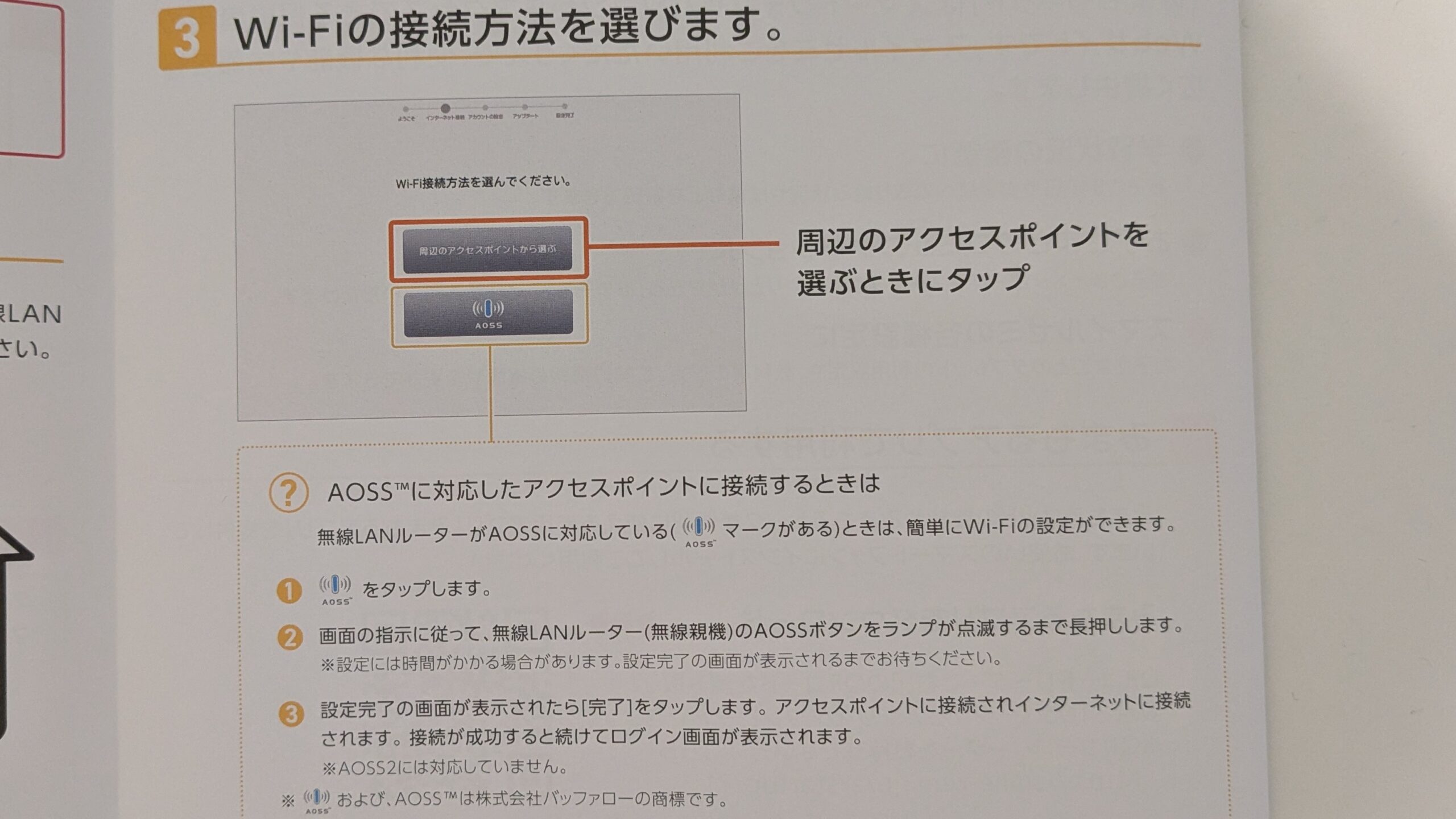 スマホやパソコンと同じように、アクセスポイントを選んでパスワードを入力するだけでした。