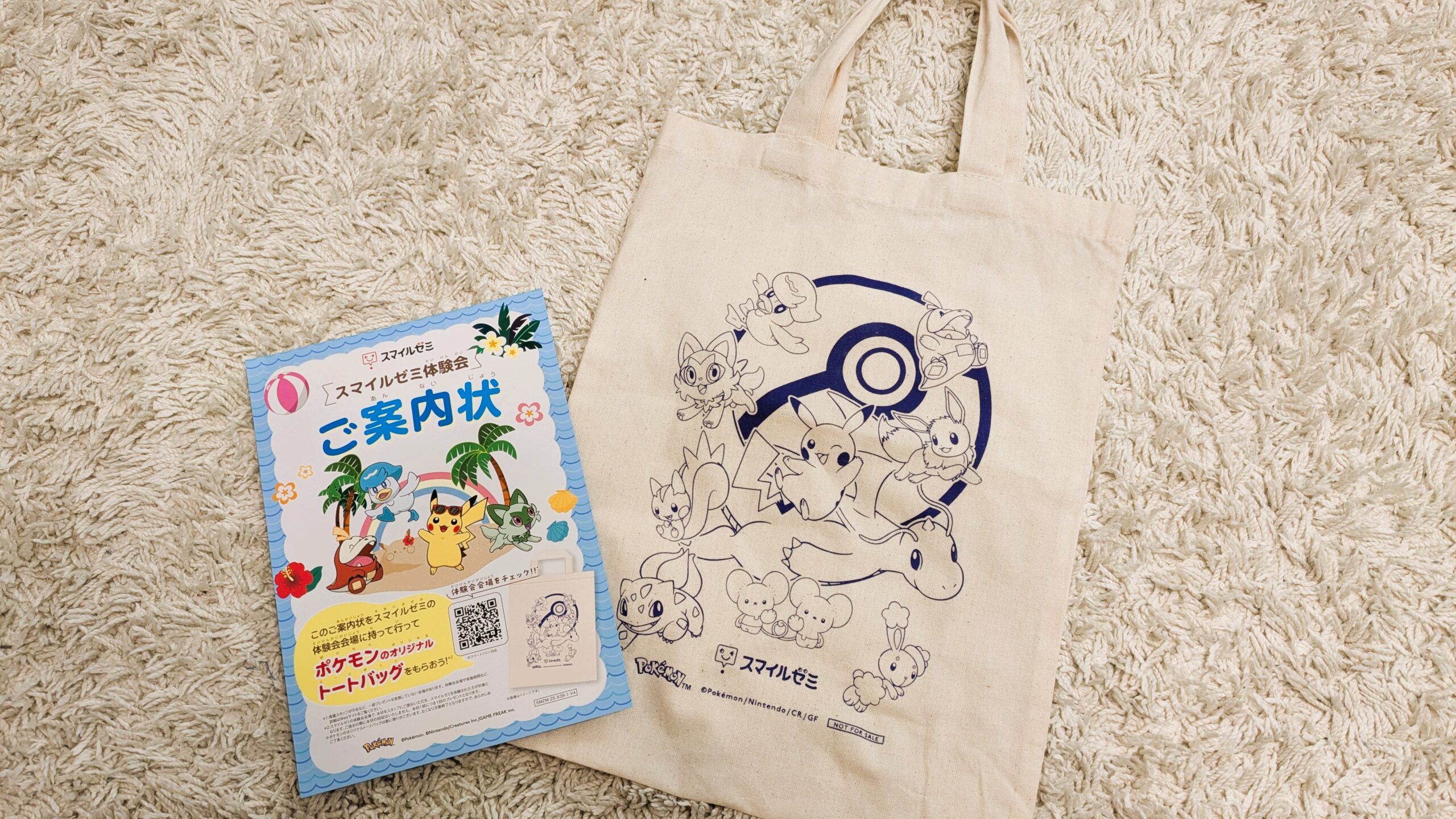 我が家が参加した体験会では、案内のはがきを持って行ったところ、体験会参加者特典として「ポケモンのトートバッグ」をもらえました!
